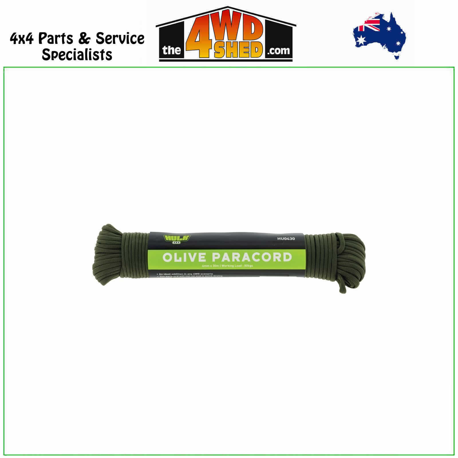 Hulk 4x4 Paracord 4mm x 30m W.L.L 84kg - Olive
