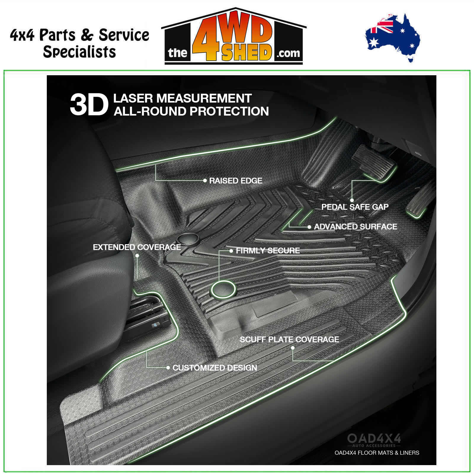 - Custom Design: Laser-measured and precisely molded for a flawless fit, covering floors, edges, door sills, and under-seat areas.