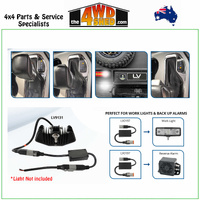 - Can be used for work lights / back up alarms wired directly into reverse