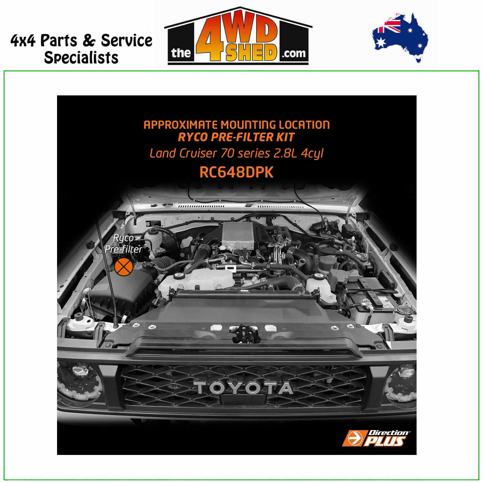 Direction Plus™ Ryco Pre-Filter Kit RC648DPK is designed, engineered & assembled in Australia to suit Toyota Landcruiser 70 series 1GD-FTV 2.8L 4cyl (2023 – On) models, protecting its engine against costly injector failure. Diesel contains more impurities than petrol, necessitating optimal filtration. This is crucial, especially while towing, taking your vehicle off-road, or accessing fuel of uncertain quality in remote areas. While the OE filter works well for many contaminants, it has limitations against water and other particles.