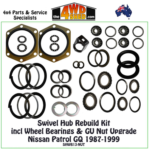 Swivel Hub & Wheel Bearing Rebuild Kit with GU Nut Upgrade - Nissan GQ Patrol